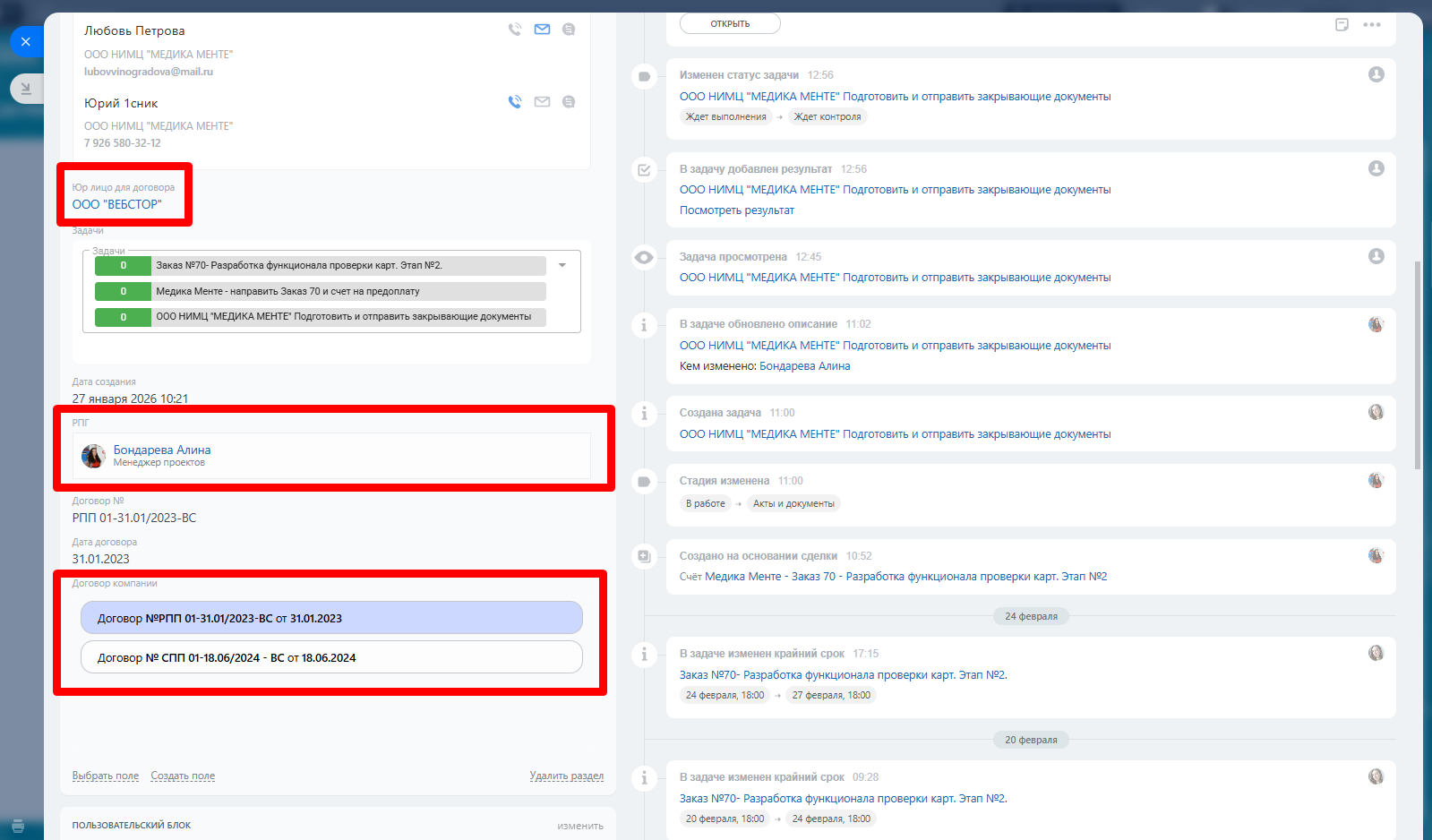 Что неудобно: Заполнение этого раздела можно автоматизировать, пробросив данные из Сделки и из Сметы