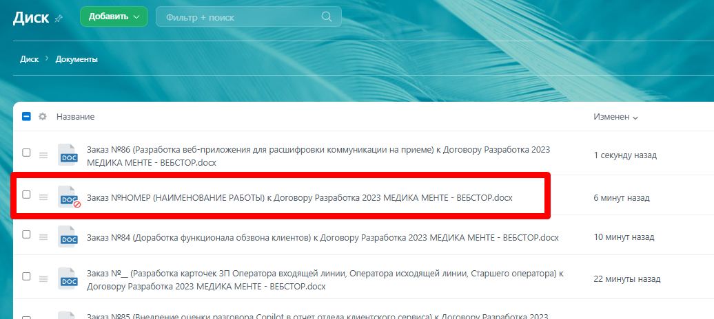 Также нет какого-то единого формата согласования работ с Клиентом - в идеале автоматически должен создаваться прям отдельный документ КП, куда ПМ только вставит ТЗ вручную и отправит на согласование, или хотя бы формировать документ Заказа (пока без номера) и вставлять туда ТЗ.