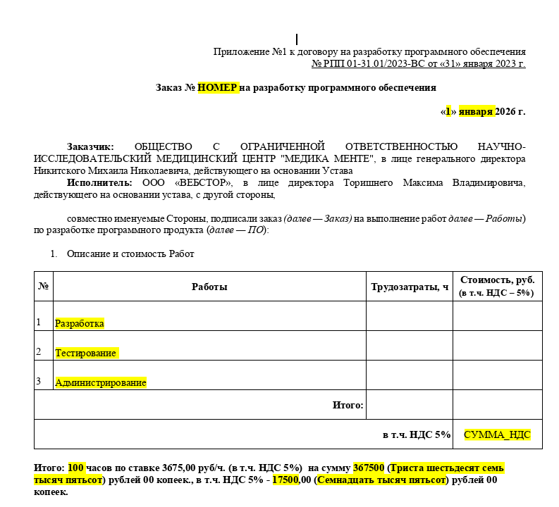 Что неудобно: все, кроме заполнения ТЗ, можно автоматизировать. Особенную боль составляет дублирование информации по трудозатартам и стоимости работ, расчет сумм и налогов вруную и заполнение данных Итого, ошибки возникают очень часто