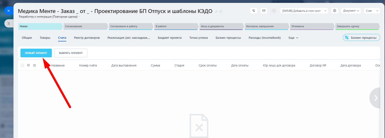 На данном этапе необходимо заполнить вкладку в Сделке Бюджет проекта:
