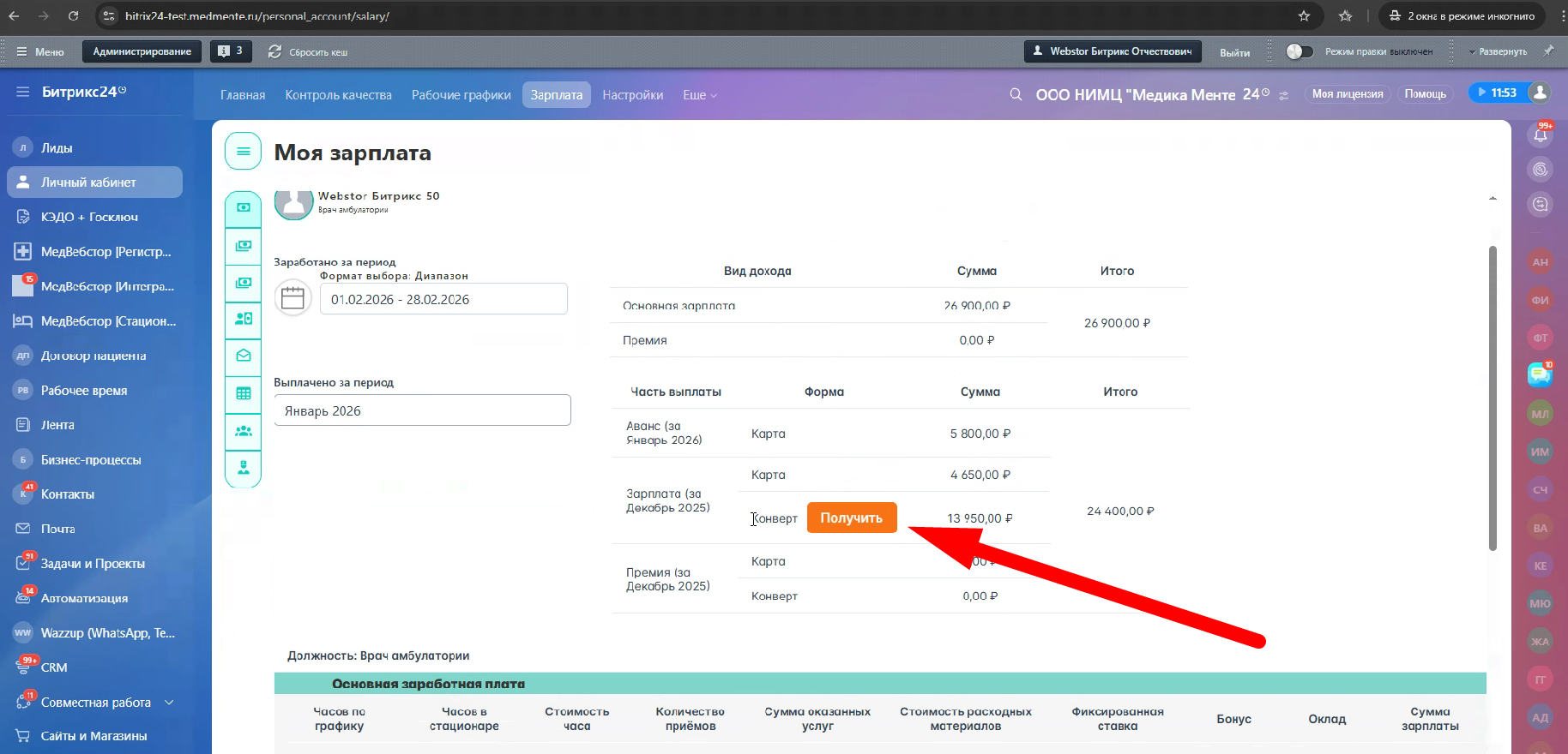 Зайдите на страницу «Моя зарплата» в своем личном кабинете. Там вы увидите сумму, которая была запланирована к выдаче, а также рядом с суммой и словом «конверт» появится кнопка «Получить».